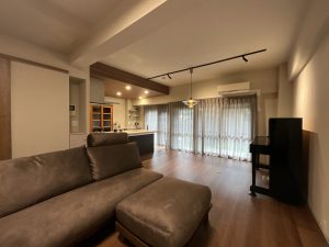 工事が無事に完了し、ソファや照明、カーテンなどのインテリアコーディネートも終え、写真撮影を行いました(^^)