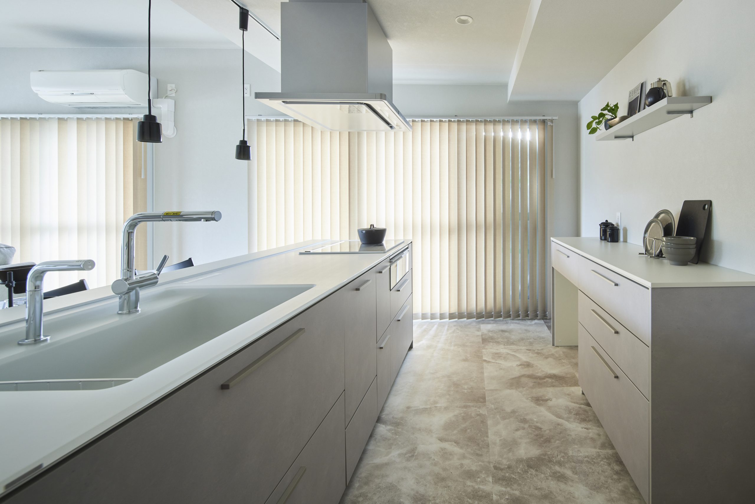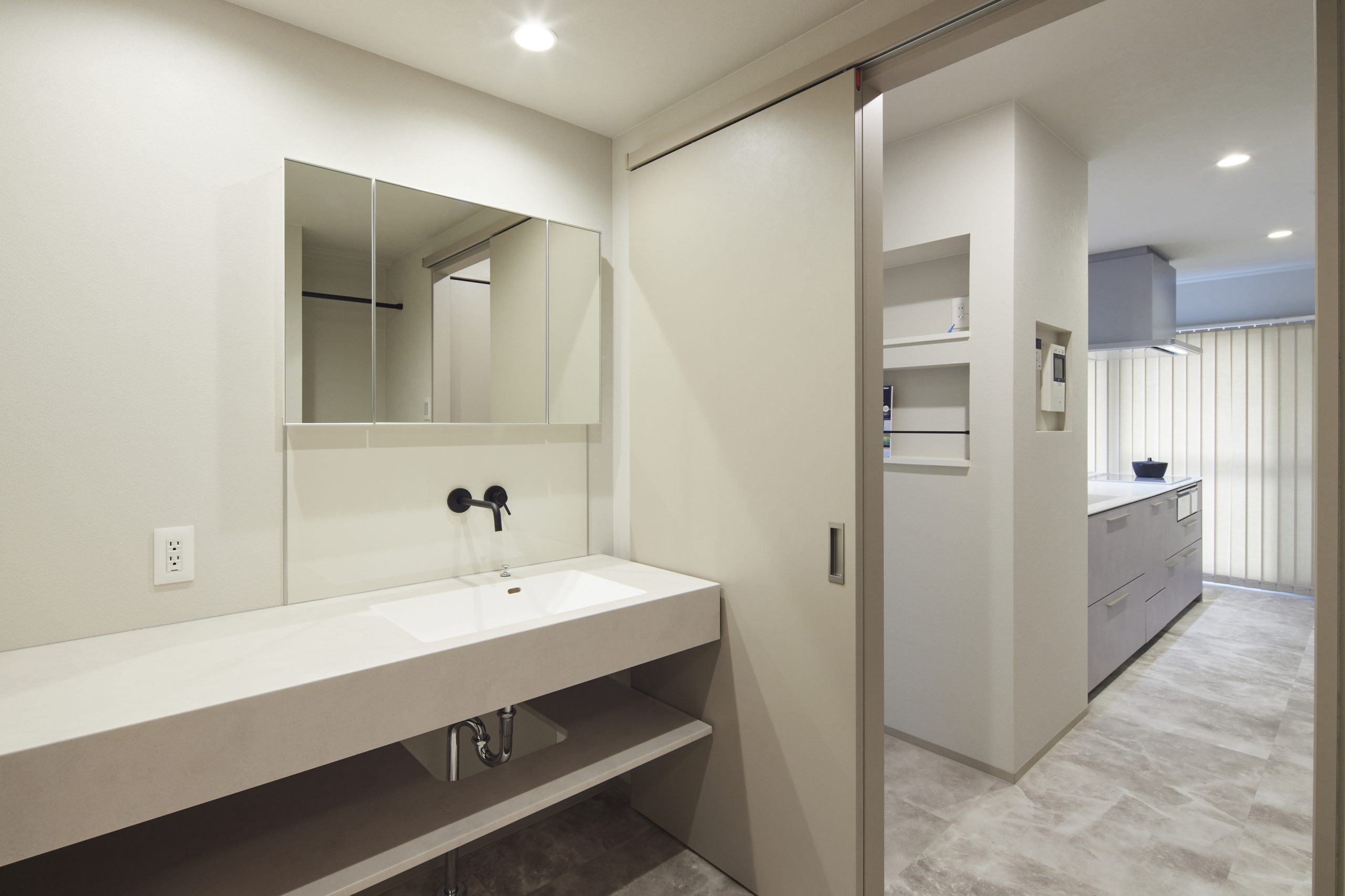 ▲キッチンと洗面の配置で、家事動線を改善