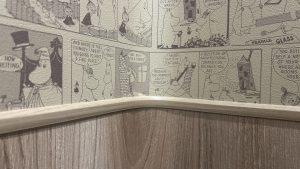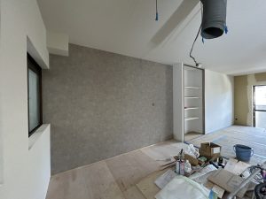 大工工事が終わったら、壁紙を貼る準備に移ります。