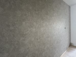 パテ処理を丁寧に行うことで、壁紙を綺麗に貼ることができます(^^)パテ処理後は、余分なパテ材をヤスリで削り平滑にし、壁紙を貼っていきます。