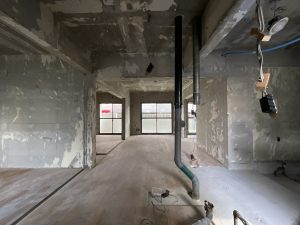 西区で始まった性能向上リノベーション、解体工事に進んでいます。