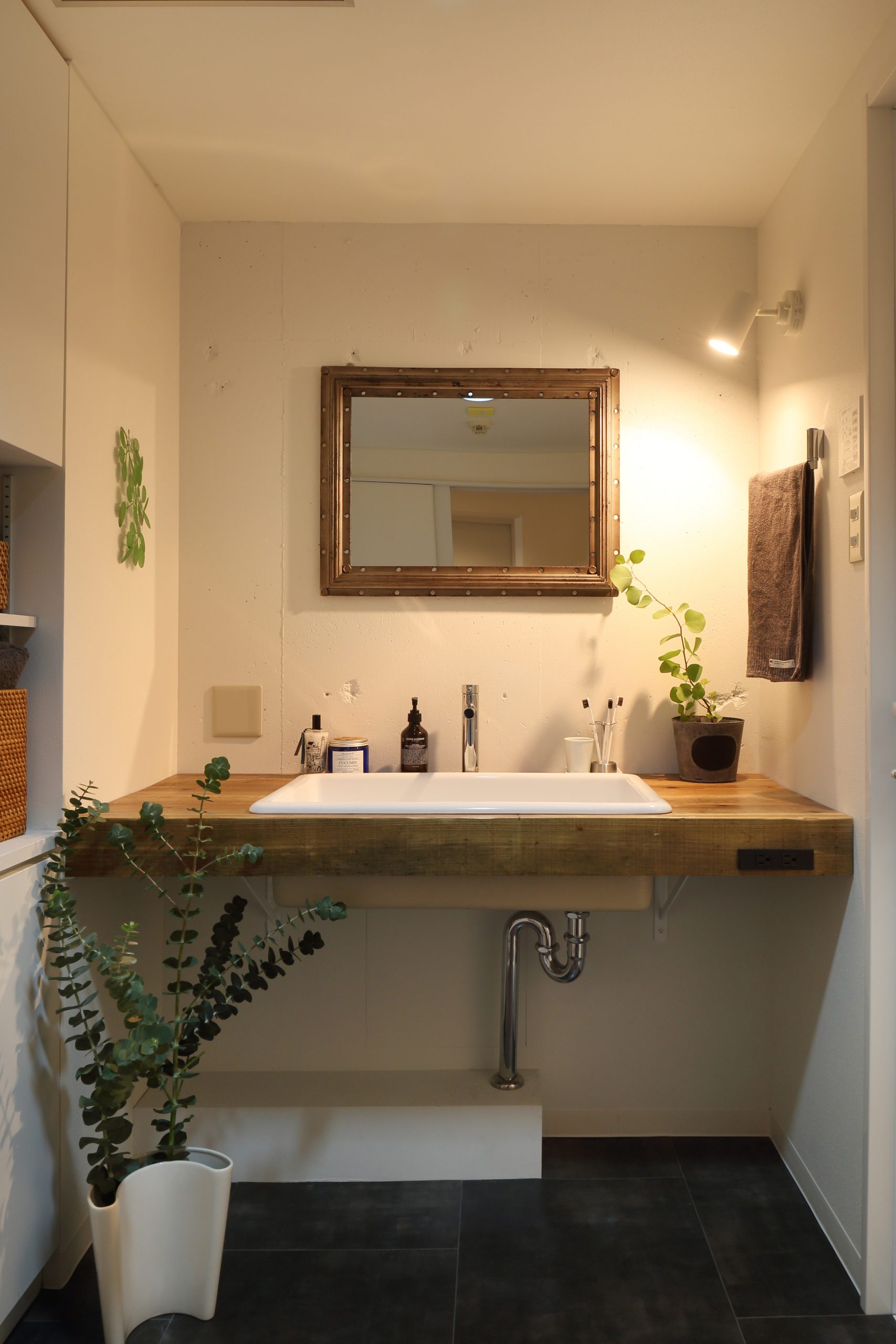 以前の洗面も使い辛いという訳ではなかったそうですが、長年使っている空間ではあったので、これをきっかけに今の自分の好みの洗面空間にしたいとご依頼をいただきました。