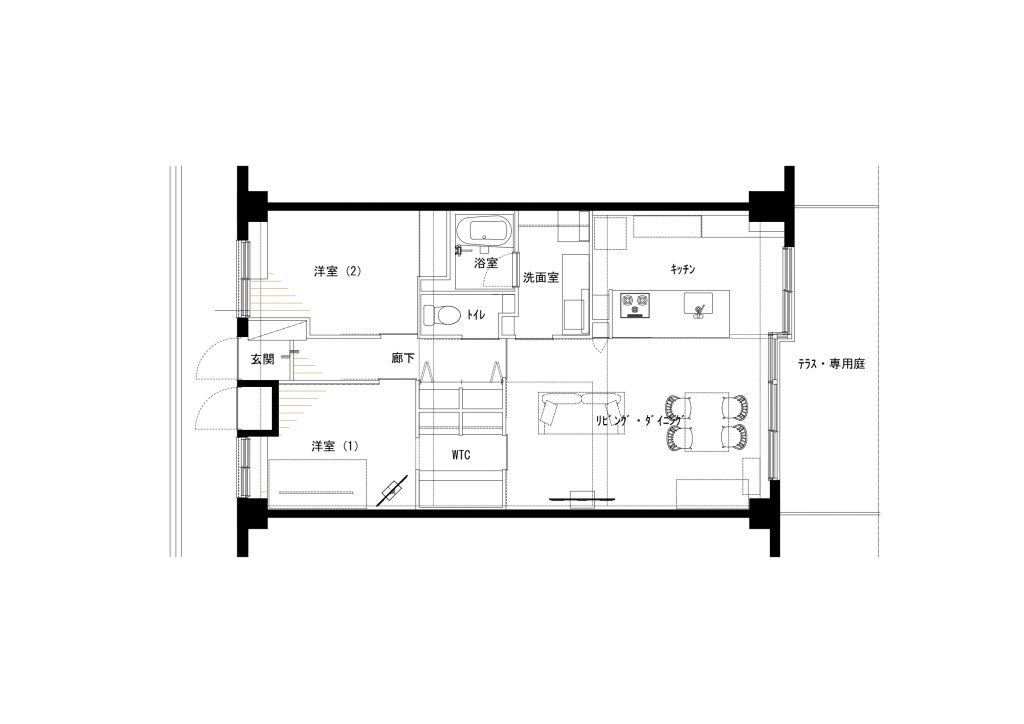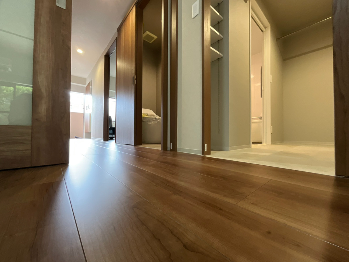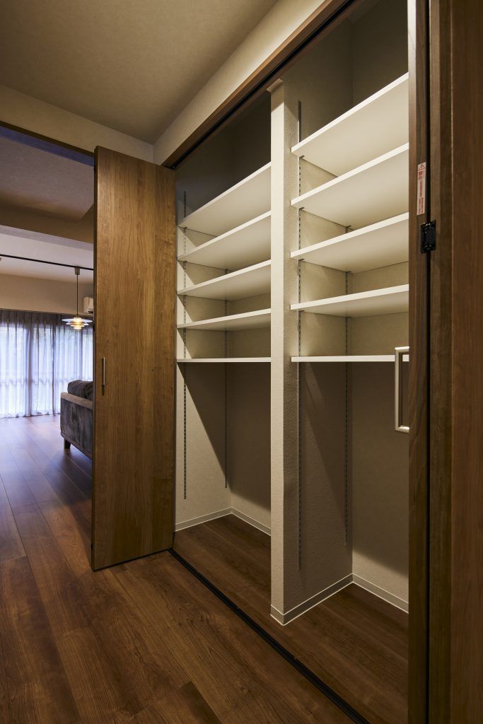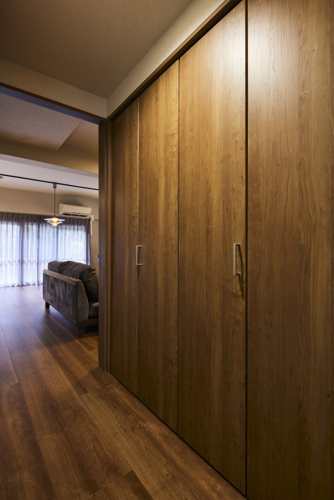デザインは、大切に使われているダイニングセットと食器棚をリノベーション後も使いたいというご要望があり、思い入れのある家具を活かした空間をご提案。建具や床材は同じメーカーで合わせ、空間に統一感を持たせています。