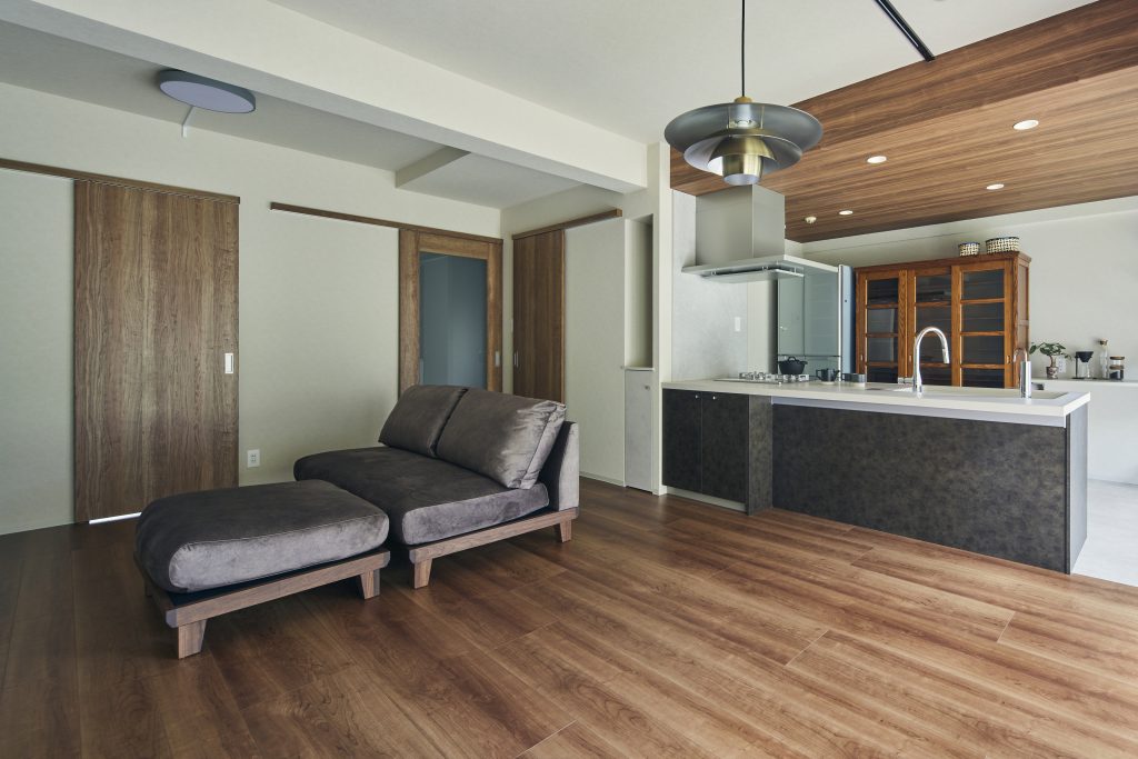 これからの生活を、より快適に、安心して暮らせるようにするためのリノベーション。段差のある室内をバリアフリーにしたり、内窓を取り付けて外気の影響を受けにくい環境へ改善しました。室内のデザインは、施主様が大切にされているお持ちのダイニングテーブルと食器棚に合わせ、木の温もりを感じる空間へ仕上げました。